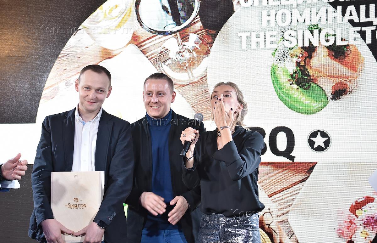 Церемония вручения премии "GQ ресторанный рейтинг" 2017 (GQ Gourmet Awards 2017) прошла в здании рынка "Центральный" на Рождественском бульваре. Слева направо: управляющий ресторана Adri на Лесной 7 Михаил Миловидов, sous-chef ресторана Adri на Лесной 7 Константин Турков и PR и автор винной карты ресторана Adri на Лесной 7 Влада Лесниченко во время церемонии.