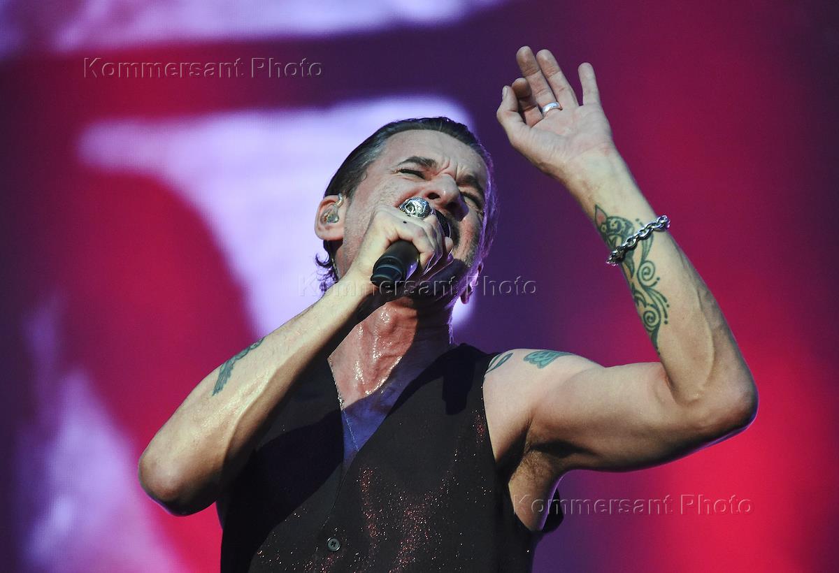 British rock band Depeche Mode concert at Otkrytie Arena. Dave Gahanb - leader vocalist during the performance.