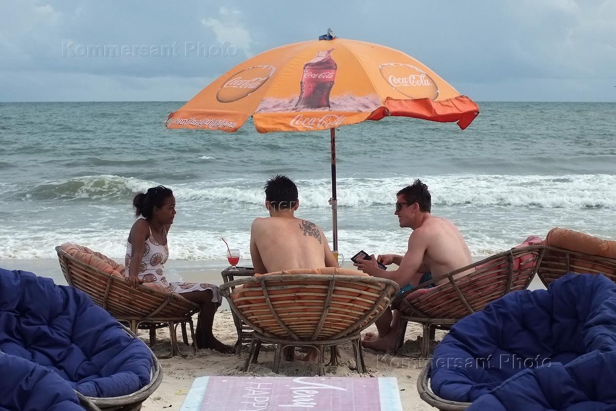 Жанровые фотографии. Камбоджа. Провинция Сиануквиль. Отдыхающие на пляже.