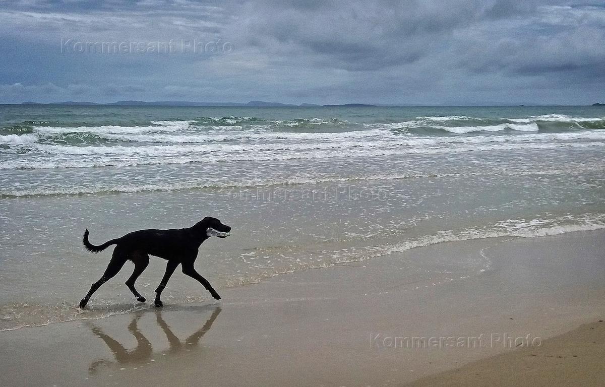 Жанровые фотографии. Камбоджа. Провинция Сиануквиль. Побережье Сиамского залива Южно-Китайского моря. Собака на берегу моря.
