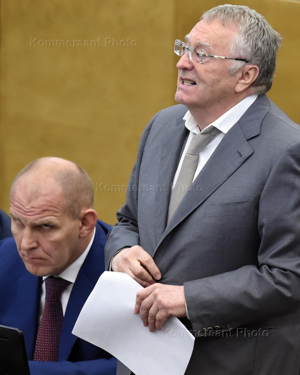 Plenary session of Russia's State Duma.The First Deputy Chairman of state Duma Committee on constitutional legislation and state construction Vyacheslav Lysakov (left) before the meeting.