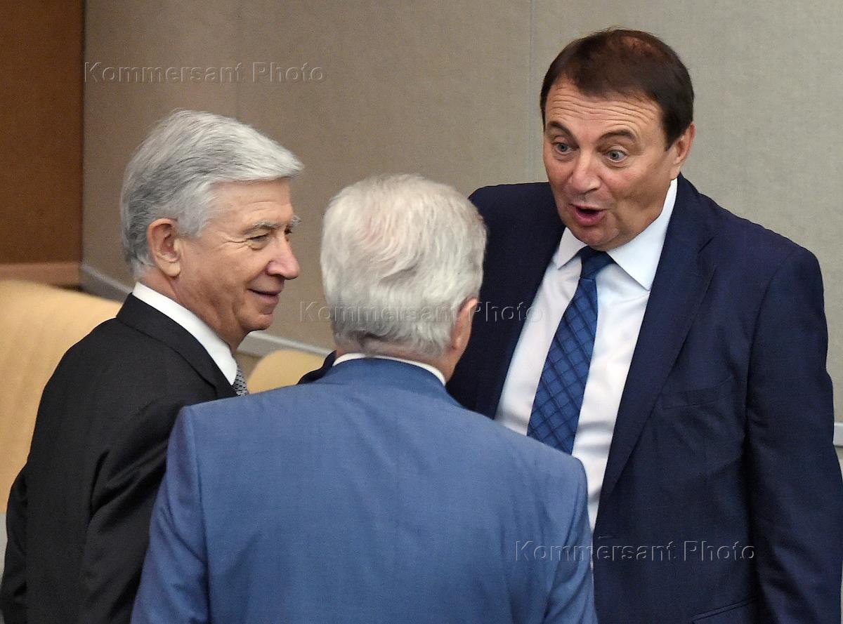 Plenary session of Russia's State Duma.The First Deputy Chairman of state Duma Committee on constitutional legislation and state construction Vyacheslav Lysakov (left) before the meeting.