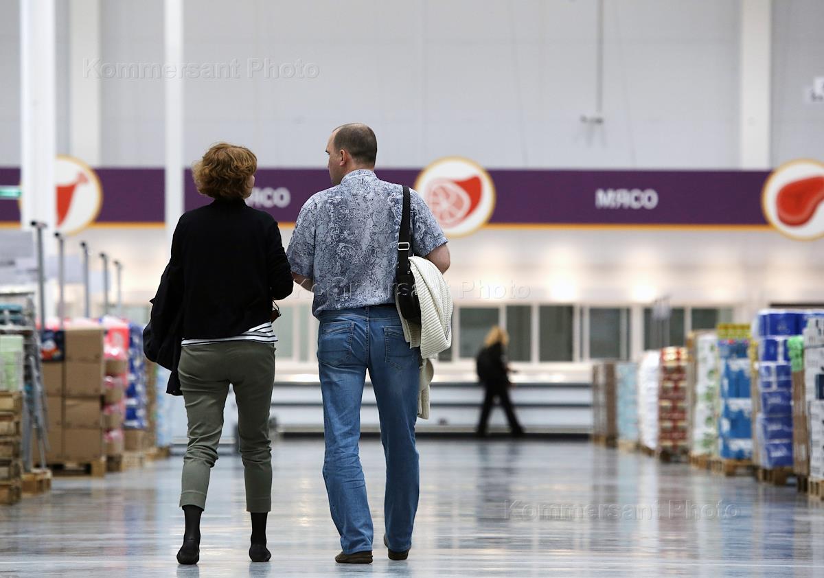 Открытие нового торгового комплекса сети "Оптоклуб Ряды" на Мурманском шоссе. Покупатели в торговом зале.