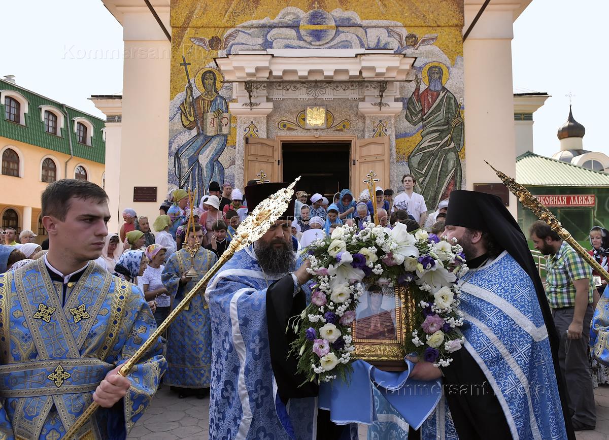 Крестный ход с иконой Божией Матери "Скорбящая" (Симферопольская), которая была прославлена Священным Синодом УПЦ в 1999 году, прошел из Свято-Троицкого женского монастыря к Александро-Невскому кафедральному собору в рамках празднования дня памяти святого равноапостольного великого князя Владимира и годовщины Крещения Руси. Митрополит Симферопольский и Крымский (УПЦ МП) Лазарь (Ростислав Швец) (второй справа) и Архиепископ Джанкойский и Раздольненский Алипий (второй слева) во время Крестного хода.
