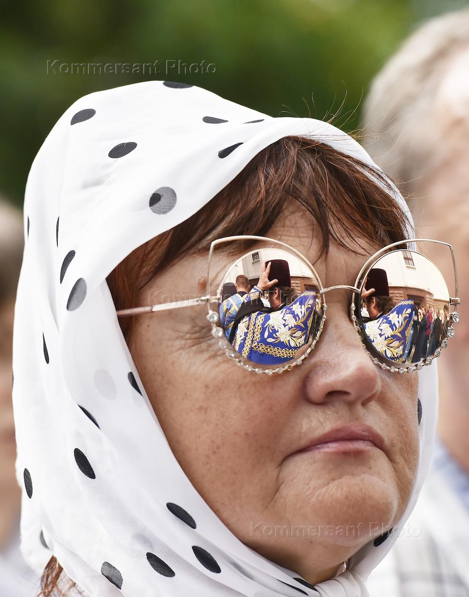 Крестный ход с иконой Божией Матери "Скорбящая" (Симферопольская), которая была прославлена Священным Синодом УПЦ в 1999 году, прошел из Свято-Троицкого женского монастыря к Александро-Невскому кафедральному собору в рамках празднования дня памяти святого равноапостольного великого князя Владимира и годовщины Крещения Руси. Священнослужитель с иконой во время Крестного хода.