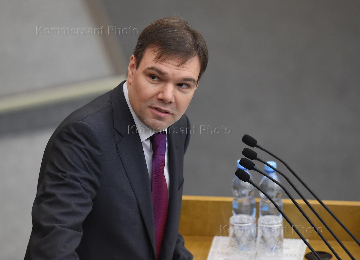 Пленарное заседание Государственной думы (ГД) России. Последнее заседание весенней сессии. Член комитета ГД России по экономической политике, промышленности, инновационному развитию и предпринимательству Александр Максимов (в центре) перед началом заседания.