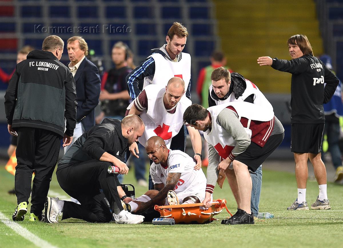 Чемпионат России по футболу 2017/2018, 2-й тур. Матч между командами "ЦСКА" (Москва) и "Локомотив" (Москва) на стадионе "Арена ЦСКА". Игрок команды "Локомотив" Ари во время матча.