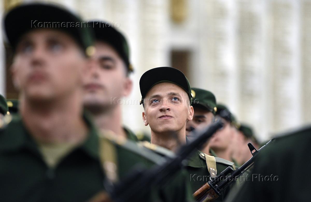 Церемония принятия Военной присяги вновь прибывшим пополнением 154-го отдельного комендантского Преображенского полка Западного военного округа в зале славы музея Великой отечественной войны в Парке Победы.