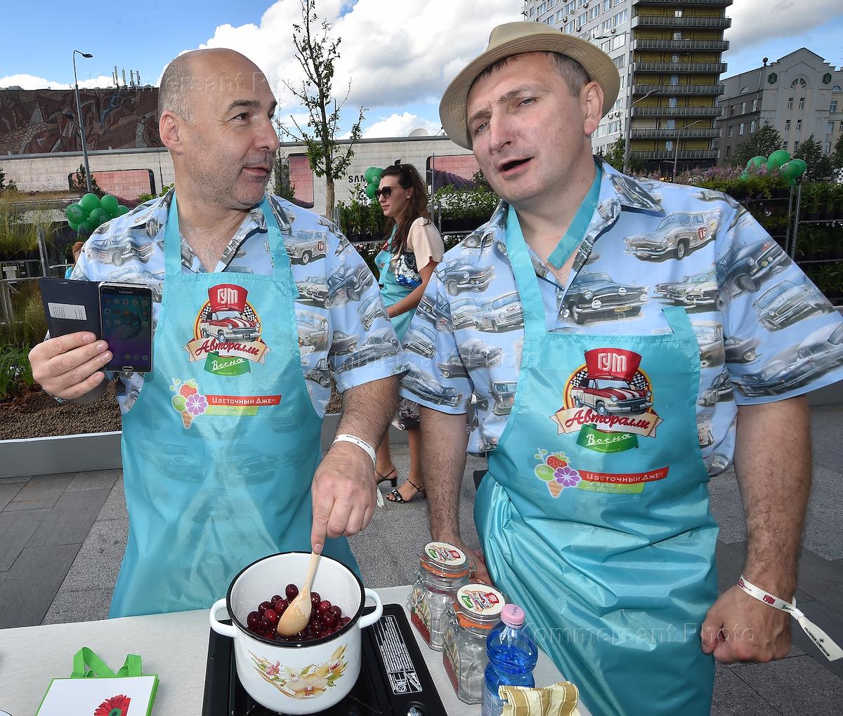 Автопробег ретро-автомобилей "ГУМ-Авторалли Gorkyclassic-2017". Фестиваль "Московское лето, Цветочный джем" на Новом Арбате. Генеральный директор ДСК-1 Андрей Паньковский (слева) и представитель в Совете Федерации России от исполнительного органа государственной власти Кабардино-Балкарской Республики Арсен Каноков (справа) на фестивале.