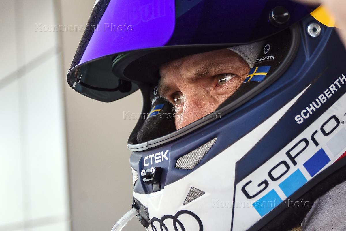 DTM racing series Russian stage at Moscow Raceway. Audi team pilot Matthias Ekstroem (Sweden) who won the second place during the award ceremony.
