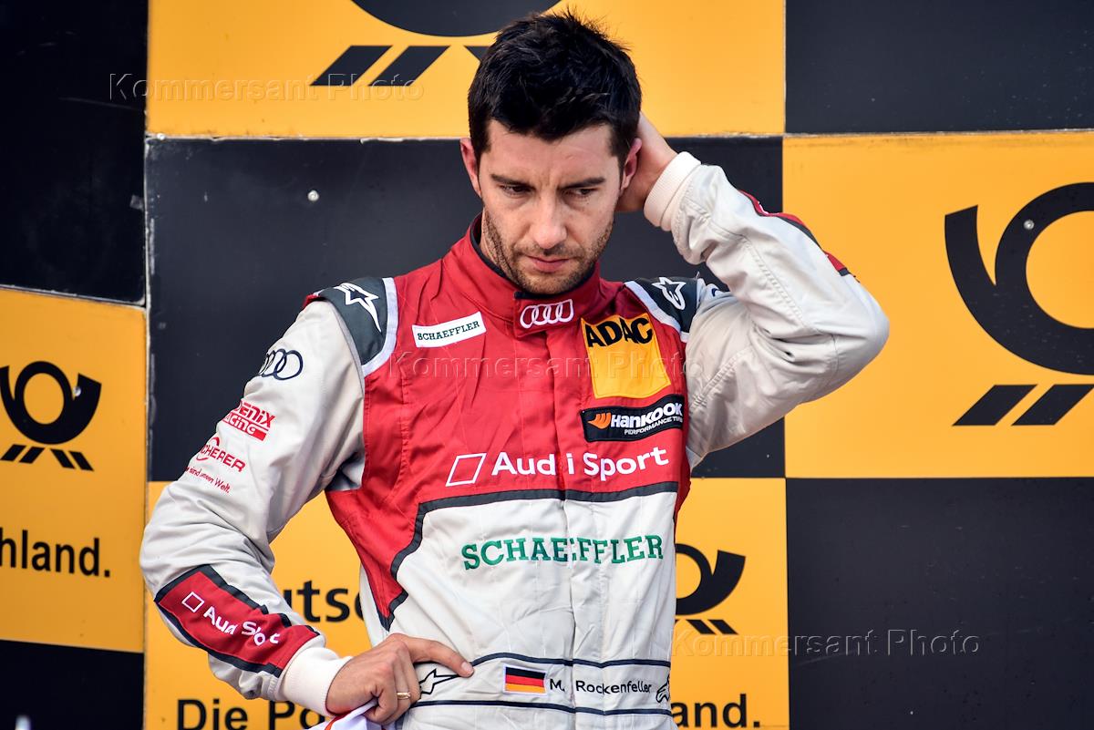 Российский этап гоночной серии DTM на автодроме Moscow Raceway. Пилот команды Audi Маттиас Экстрем (Швеция) (в центре), завоевавший второе место, во время церемонии награждения.