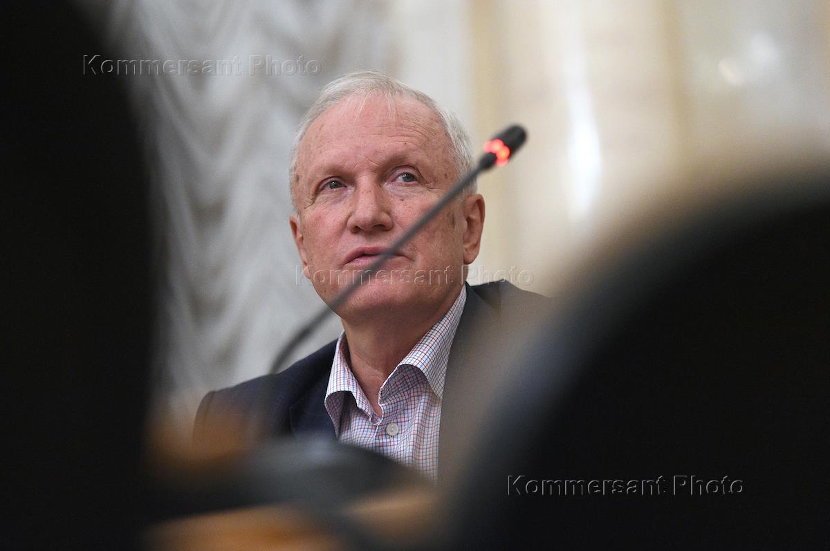 Исполняющий обязанности президента Российской академии наук (РАН) Валерий Козлов во время пресс-конференции.