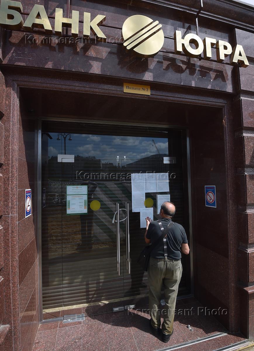 Московское отделение банка "Югра" в Большом Спасоглинищевском переулке. Закрытая дверь отделения.