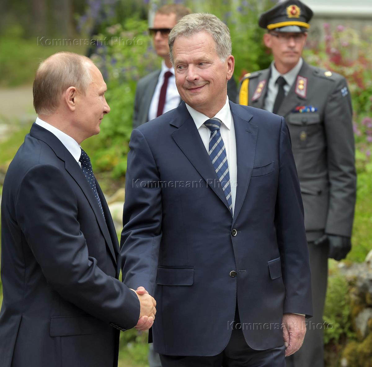 Russian President Vladimir Putin's work trip to Finland. Russian president Vladimir Putin (left) and Finland's president Sauli Niiniste (right) during the meeting.