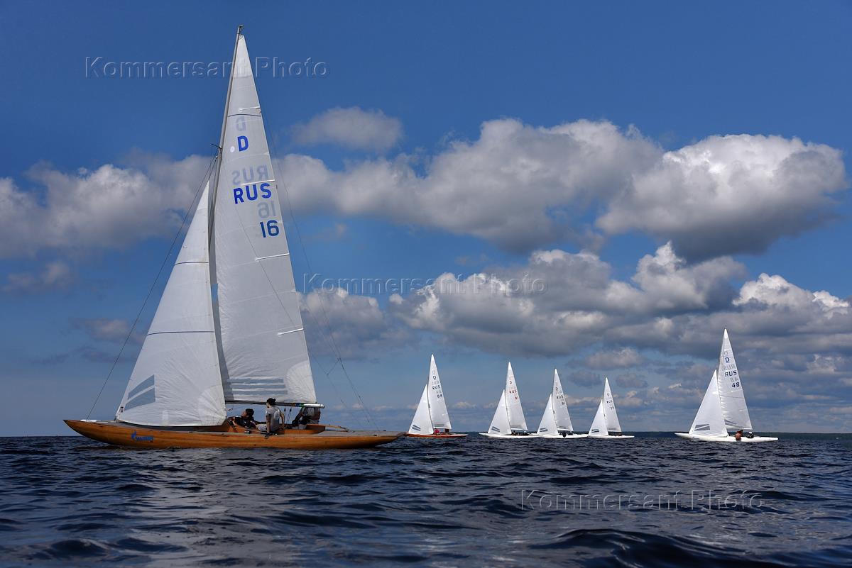 Участники Открытого чемпионата России по парусному спорту в классе яхт "Дракон" в Финском заливе в районе Лахты – на базе Яхт-клуба Санкт-Петербурга.