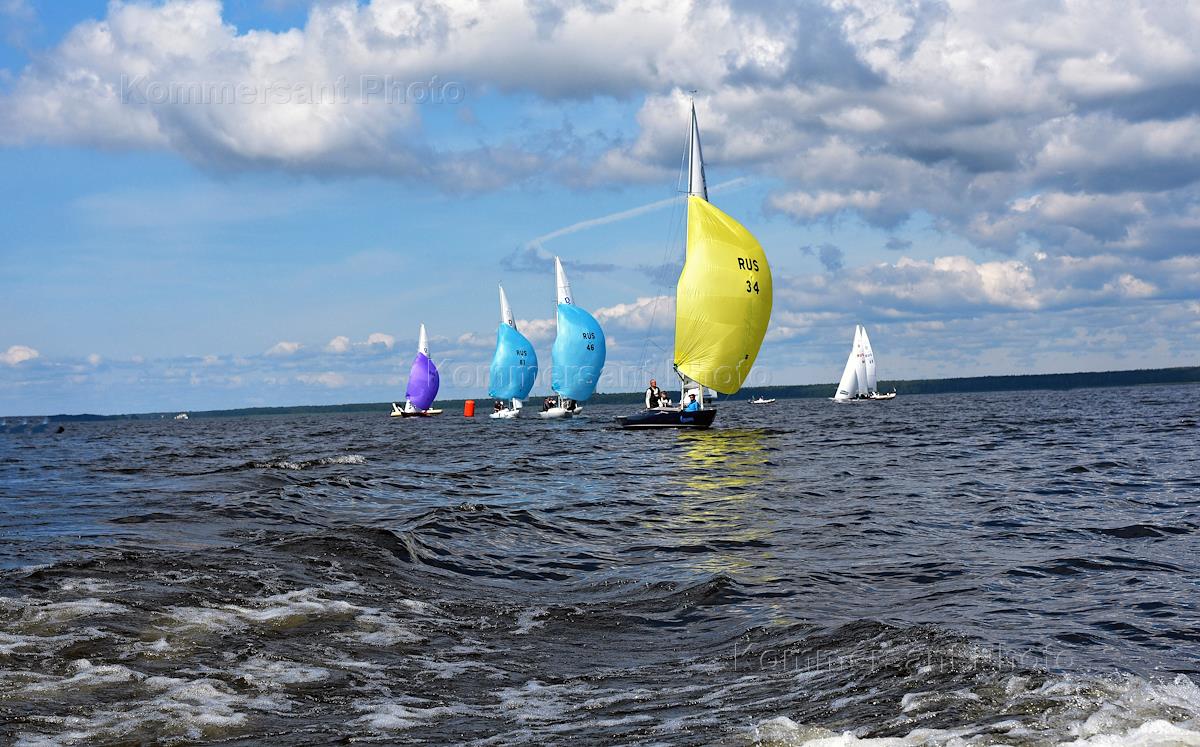 Участники Открытого чемпионата России по парусному спорту в классе яхт "Дракон" в Финском заливе в районе Лахты – на базе Яхт-клуба Санкт-Петербурга.