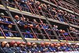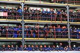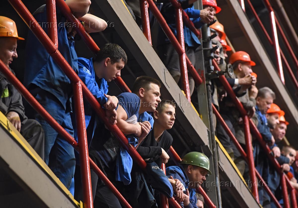 Церемония закладки дизельных подводных лодок "Петропавловск-Камчатский" и "Волхов" проекта 636 для Военно-морского флота России прошла на заводе "Адмиралтейские верфи". Рабочие завода во время церемонии.