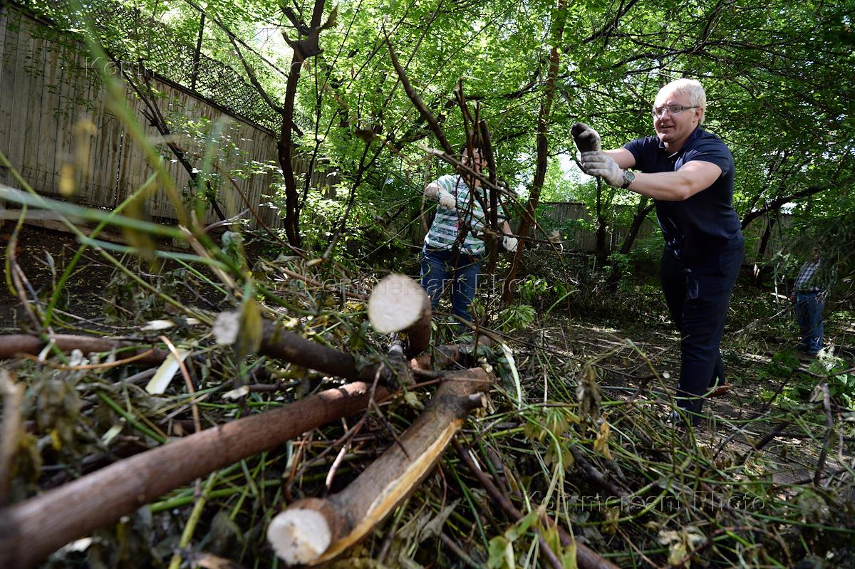 Волонтеры из Франции и России во время работ по приведению в порядок памятников архитектуры Донского монастыря и Дома Палибина.