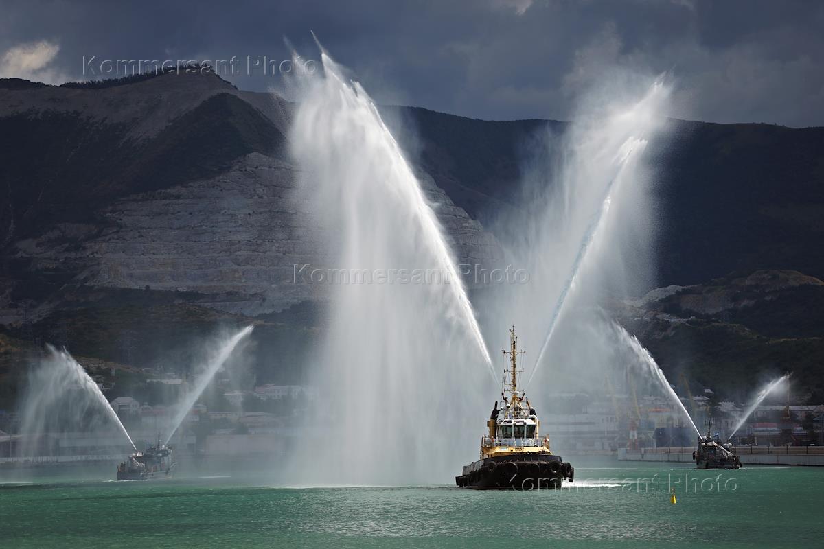 Военно-морской парад в честь Дня Военно-Морского флота (ВМФ) России. Корабли пожарной службы.