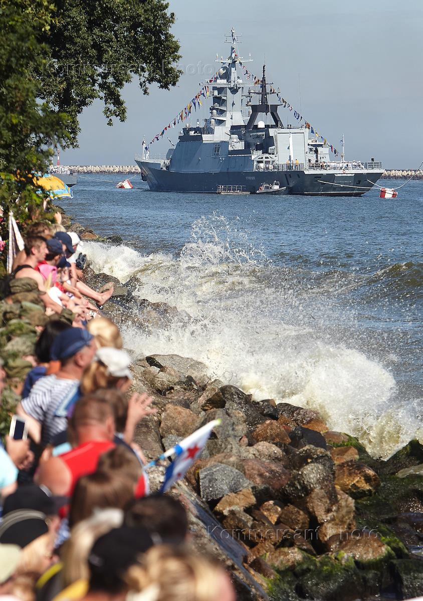 Военно-морской парад в честь Дня Военно-Морского флота России. Боевой корабль "Настойчивый" во время парада.