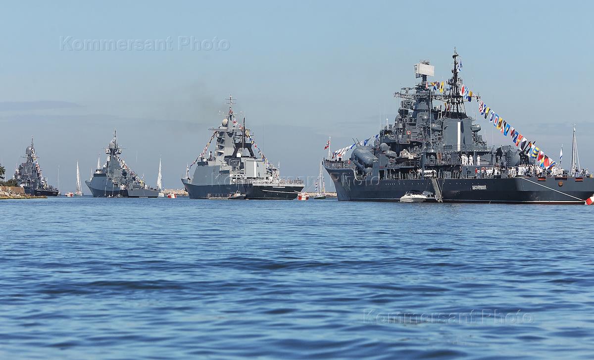 Военно-морской парад в честь Дня Военно-Морского флота России. Боевые корабли во время парада.