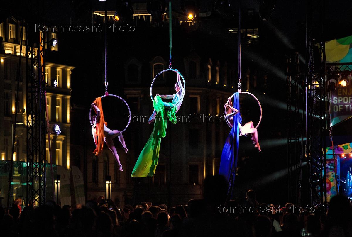 Closing ceremony of World Games 2017. Performance of aerial gymnasts during the ceremony.