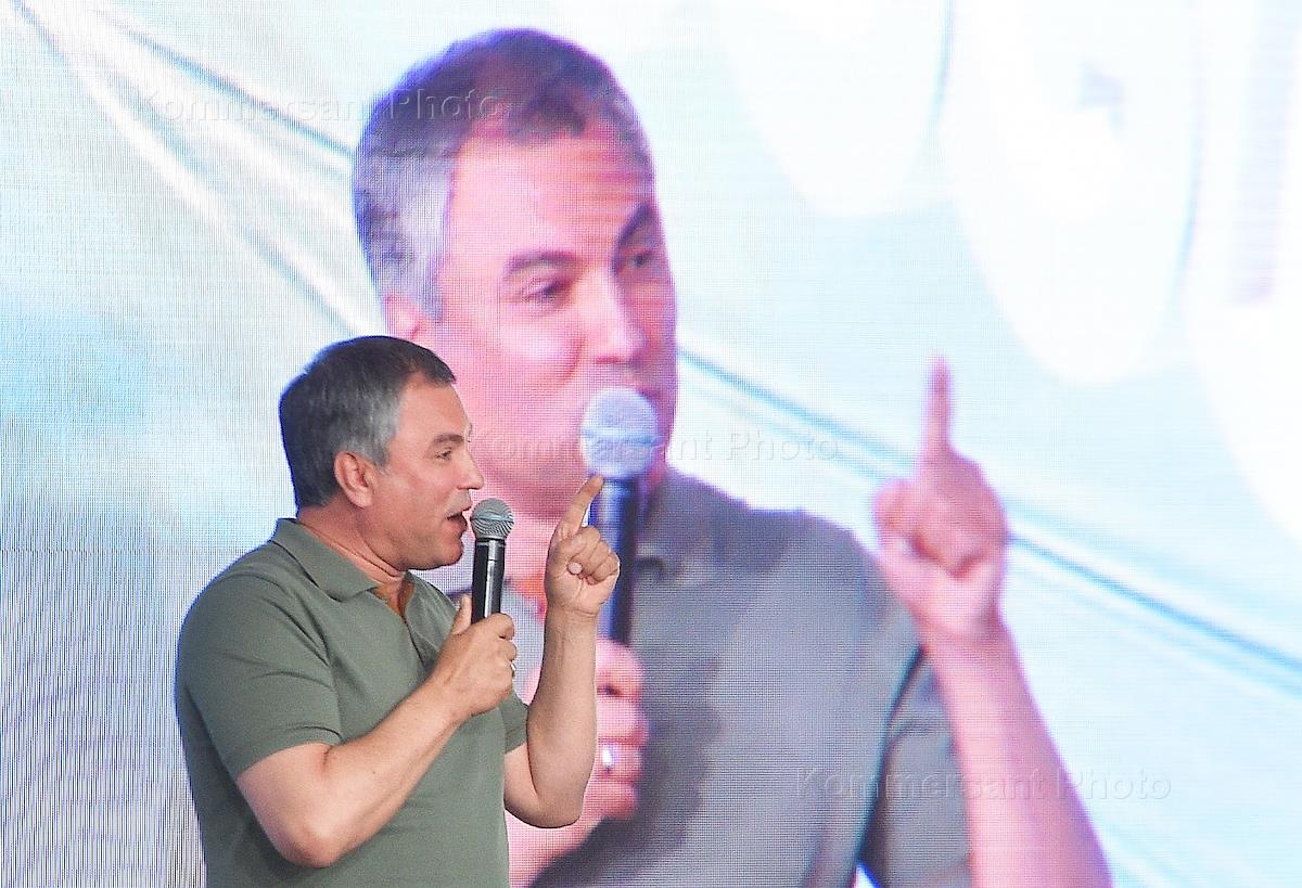 Всероссийский молодежный образовательный форум "Территория смыслов на Клязьме". Председатель Государственной думы России Вячеслав Володин во время выступления перед участниками форума.