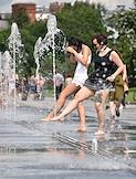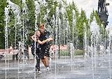 Жанровая фотография. Жара в городе. Люди купаются в фонтанах в парке "Музеон".