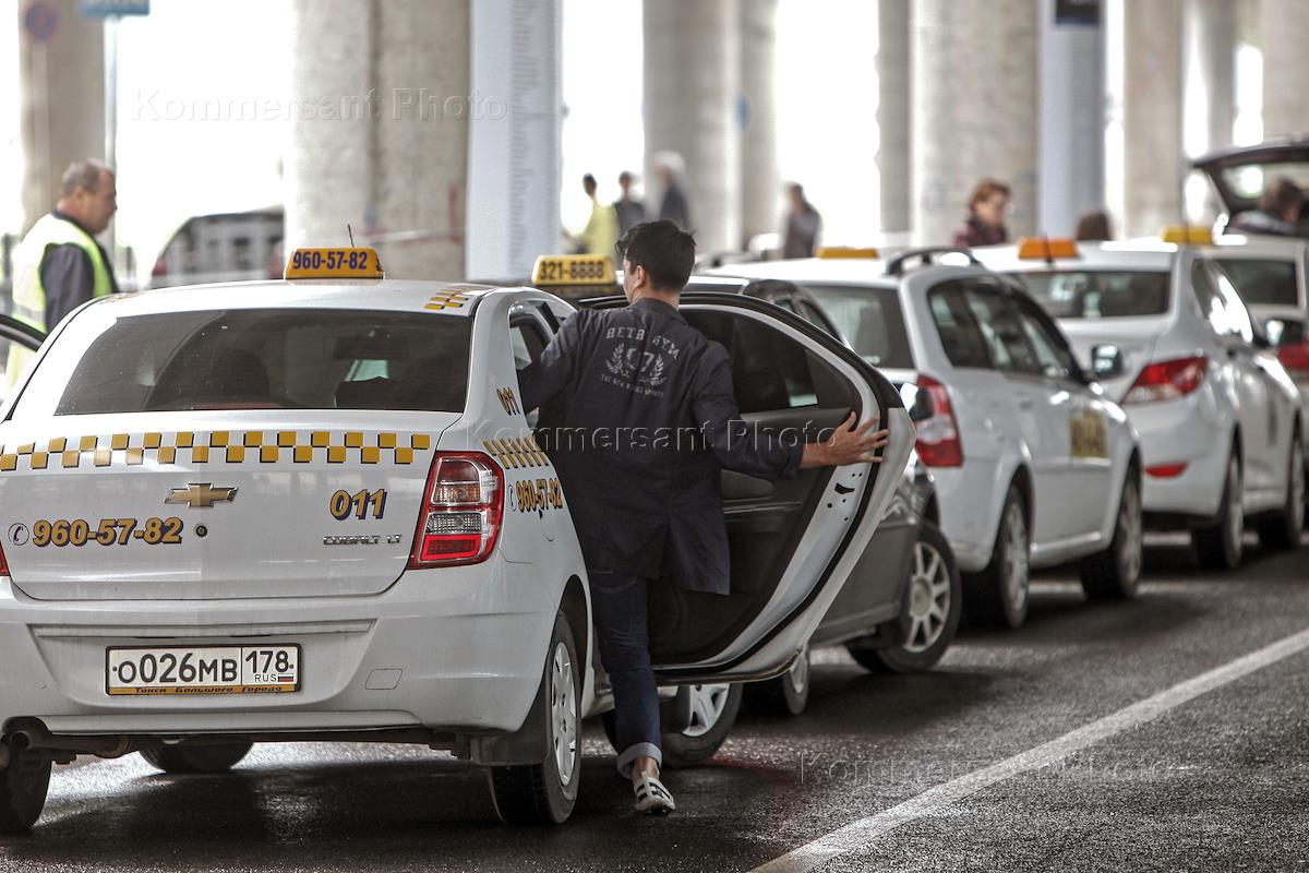 Аэропорт "Пулково". Пассажирский терминал. Стоянка такси у здания аэропорта.