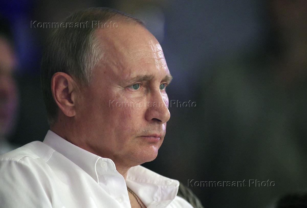 VIII Международный турнир по профессиональному боевому самбо "Плотформа S-70" прошел в клубе "Плотформа". Президент России Владимир Путин во время турнира.