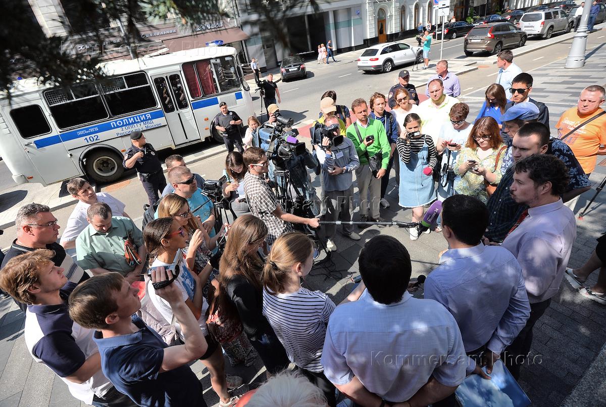 Пресс-брифинг клиентов банка "Югра" и других разоренных банков, потерявших свои деньги из-за бездействия Центрального банка (ЦБ) и манипуляций Агентства по страхованию вкладов (АСВ) прошел стен ЦБ России. Здание Центрального банка России.
