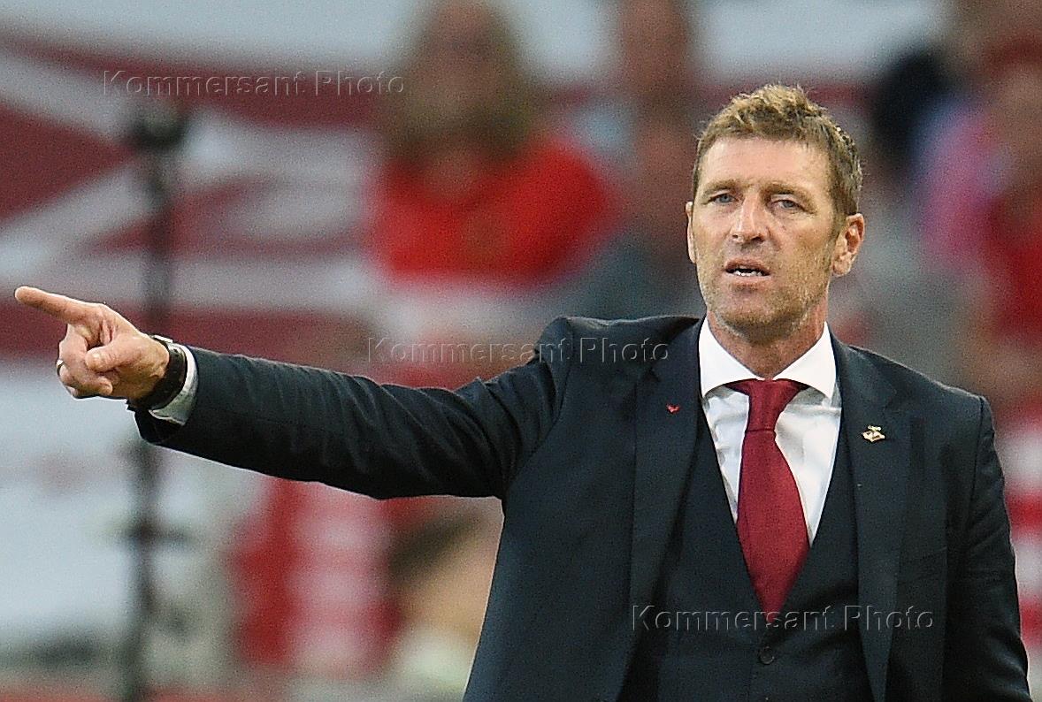 Чемпионат России по футболу 2017/2018. 5-й тур. Матч между командами "Спартак" (Москва) и "Арсенал" (Тула) прошел на стадионе "Открытие Арена". Главный тренер команды "Спартак" Массимо Каррера во время матча.