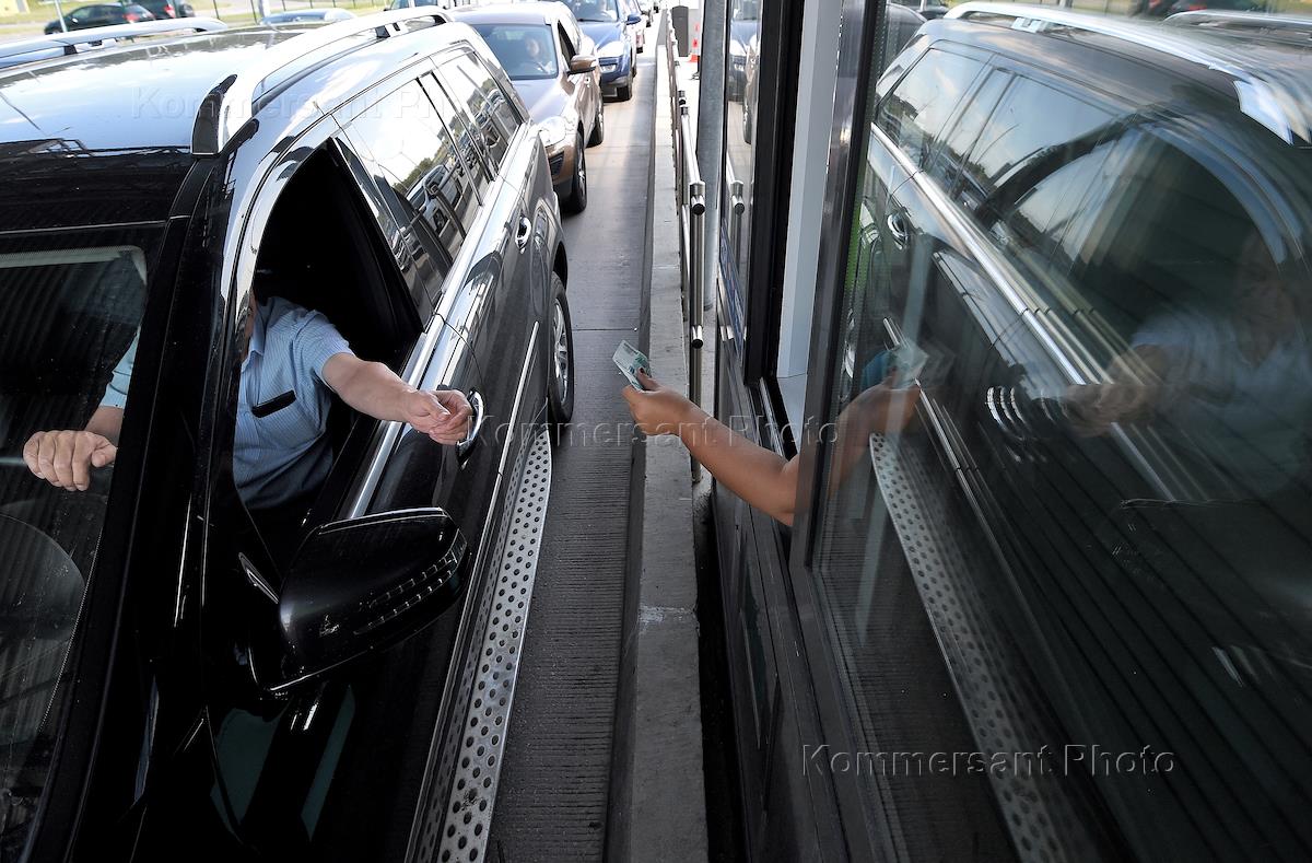 Автомобильная дорога М-11 "Москва - Санкт-Петербург". Пункт взимания платы (ПВП). Водитель во время оплаты проезда.