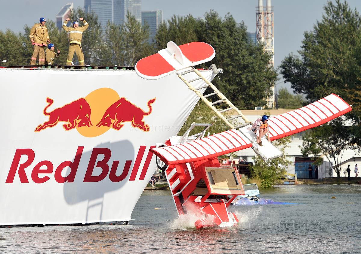 Фестиваль самодельных летательных аппаратов Red Bull Flugtag 2017 прошел на Гребном канале в Крылатском. Летательные аппараты во время приводнения.