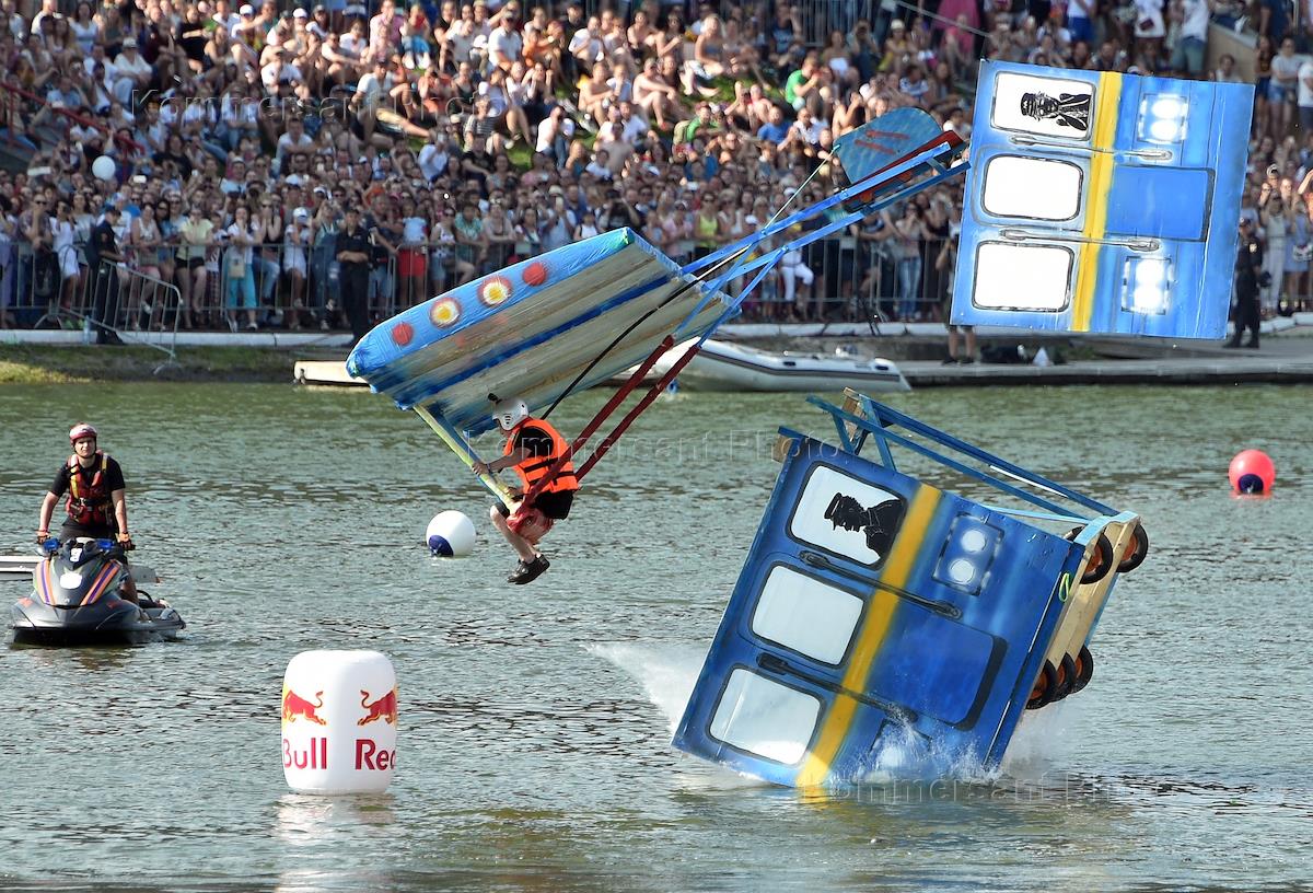 Фестиваль самодельных летательных аппаратов Red Bull Flugtag 2017 прошел на Гребном канале в Крылатском. Летательные аппараты во время приводнения.