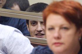 Рассмотрение уголовного дела в отношении девяти членов незаконного вооруженного формирования из Ингушетии прошло в Северо-Кавказским окружным военным судом. Подсудимый Лечи Гадамаури во время заседания.