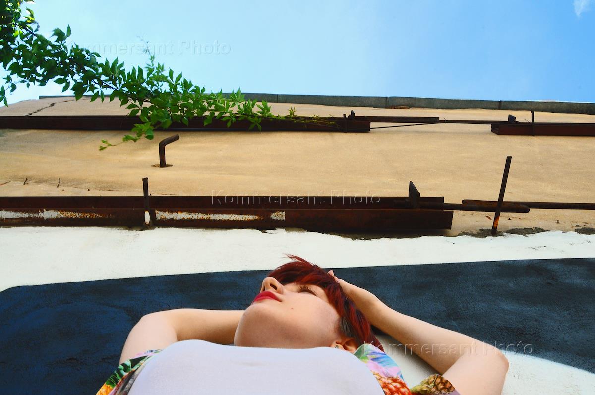 Жанровая фотография. Девушка загорает на камнях на берегу Черного моря.