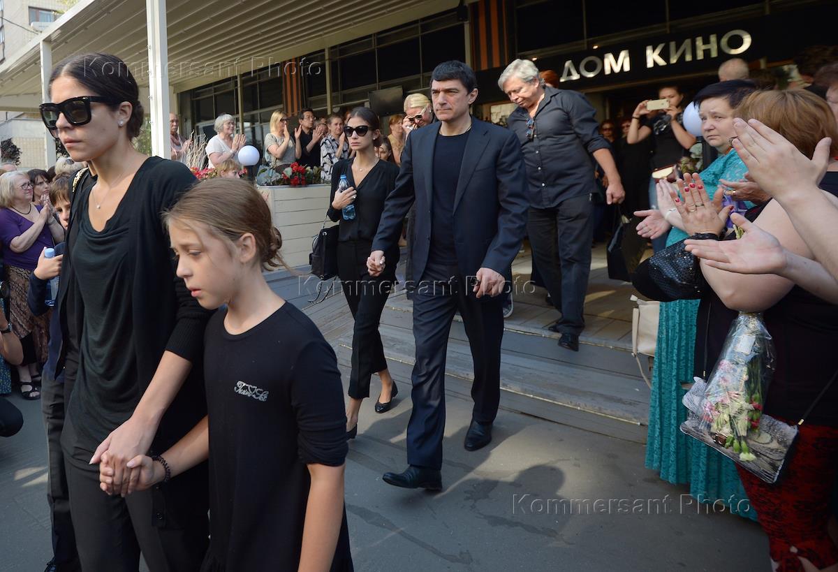 Церемония прощания с актрисой театра и кино, режиссером Верой Глаголевой в Большом зале Дома кино. Дочери Веры Глаголевой Анна Нахапетова (слева), Анастасия Шубская (третья слева) и бизнесмен Кирилл Шубский (в центре) после окончания церемонии.