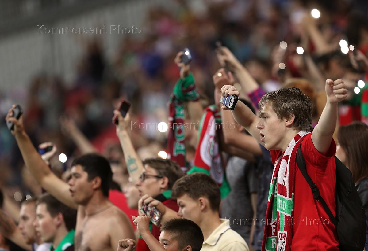 Чемпионат России по футболу 2017/2018. Матч между командами "Рубин" (Казань) и "Анжи" (Махачкала) прошел на стадионе "Казань-арена". Болельщики команды "Рубин" на трибуне во время матча.
