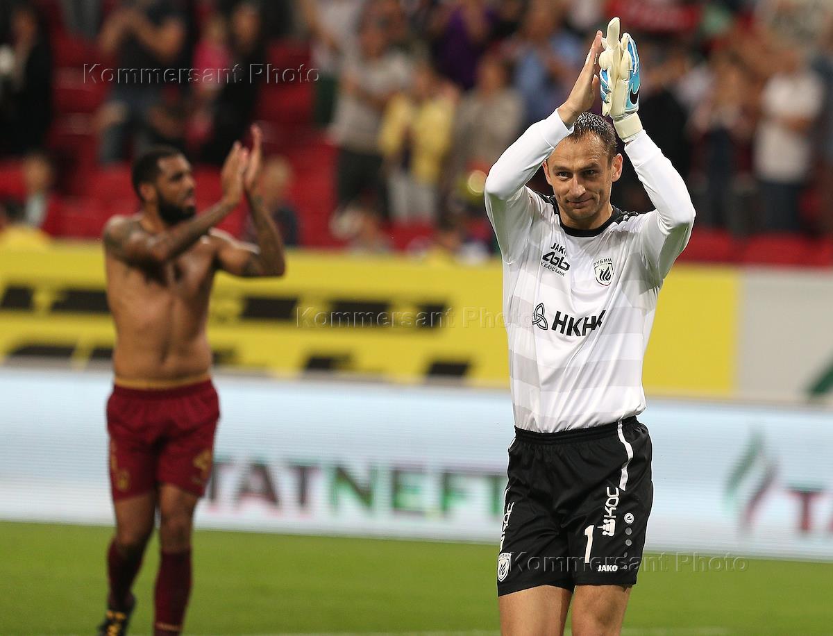 Чемпионат России по футболу 2017/2018. Матч между командами "Рубин" (Казань) и "Анжи" (Махачкала) прошел на стадионе "Казань-арена". Вратарь команды "Рубин" Сергей Рыжиков (справа) во время матча.
