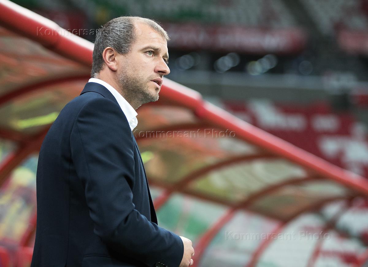 Чемпионат России по футболу 2017/2018. Матч между командами "Рубин" (Казань) и "Анжи" (Махачкала) прошел на стадионе "Казань-арена". Главный тренер команды "Анжи" Вадим Скрипченко во время матча.