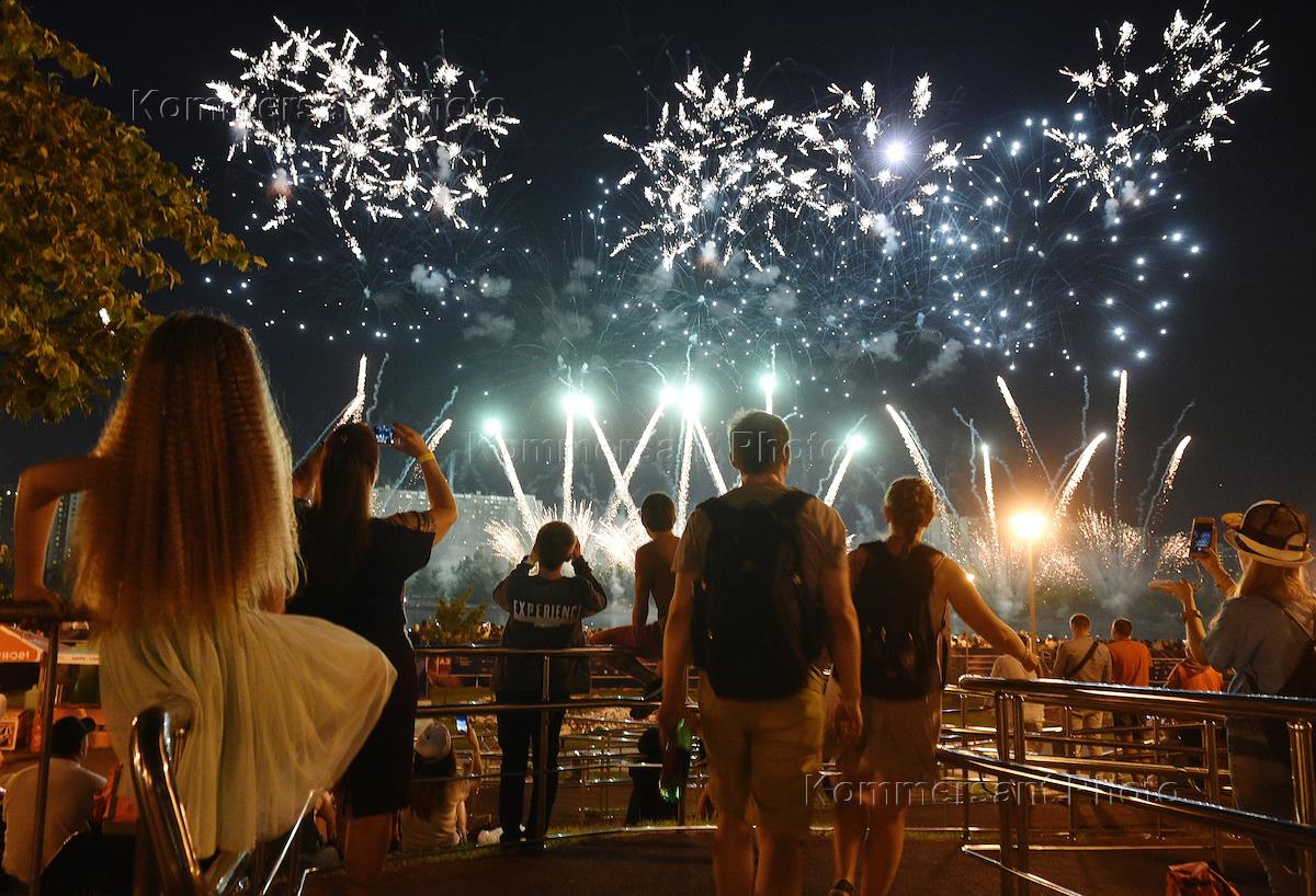 Международный фестиваль фейерверков "Ростех" в Братеевском каскадном парке. Зрители на фестивале.