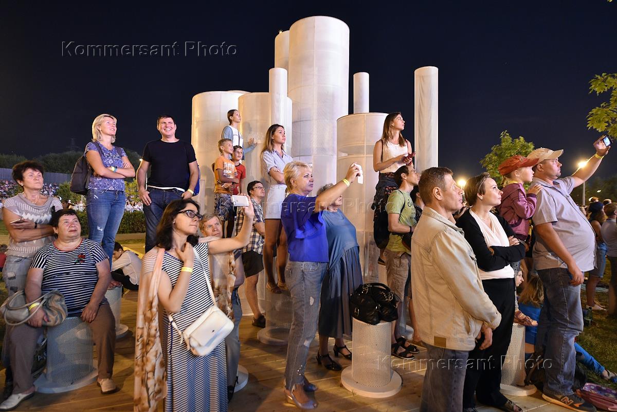 Международный фестиваль фейерверков "Ростех" в Братеевском каскадном парке. Зрители на фестивале.