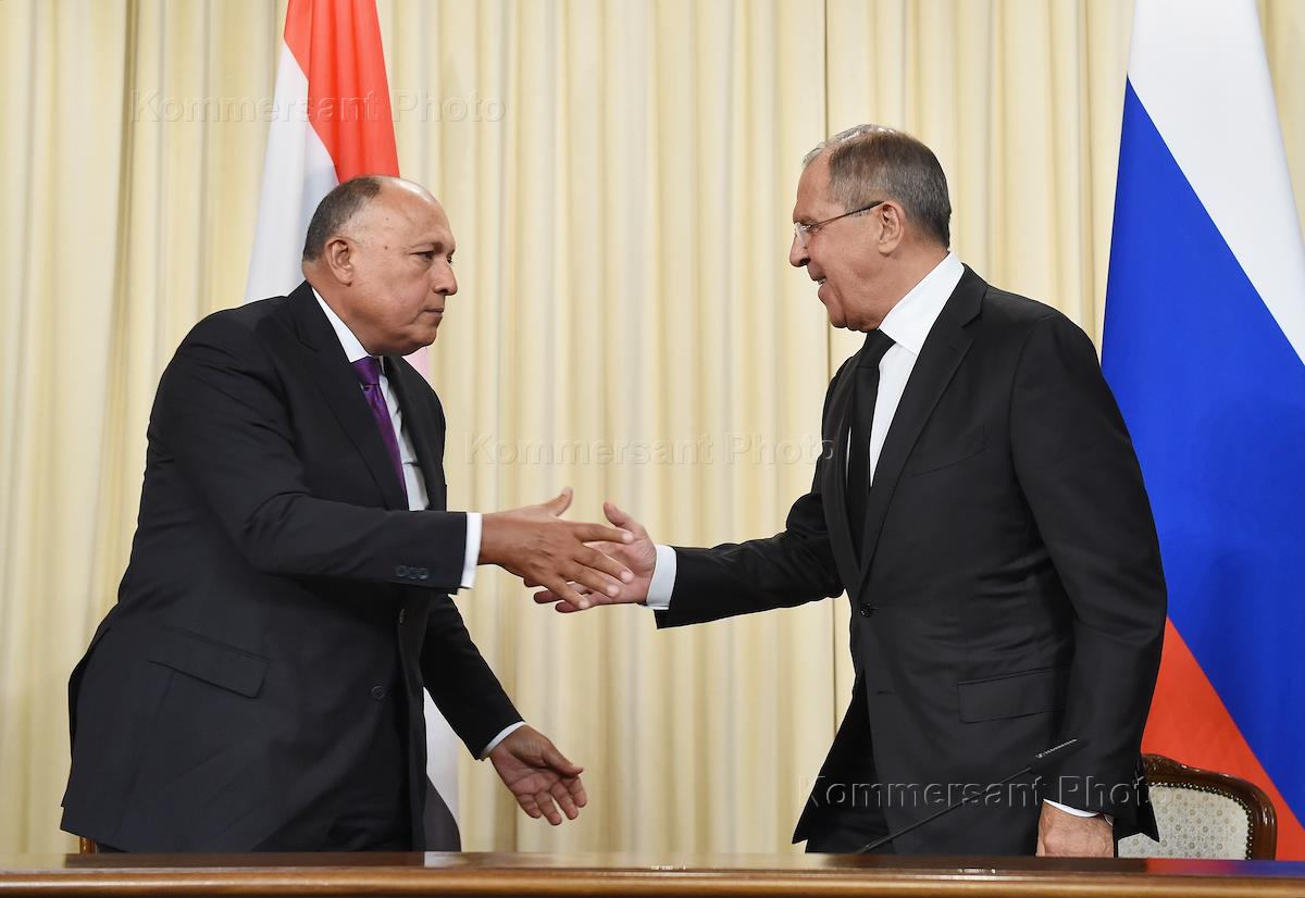 Russian Foreign Minister Sergei Lavrov (right) and Egyptian Foreign Minister Sameh Shukri (left) before the meeting at Russian Foreign Ministry's Reception House.