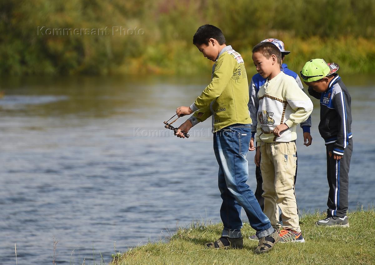 Предвыборная кампания в Бурятии. Лучник ив национальной одежде во время состязания.