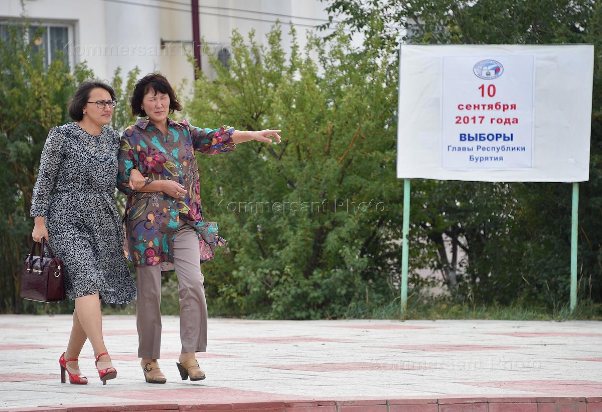 Предвыборная кампания в Бурятии. Временно исполняющий обязанности главы Республики Бурятия Алексей Цыденов (справа) во время встреч с избирателями в рамках предвыборной кампании.