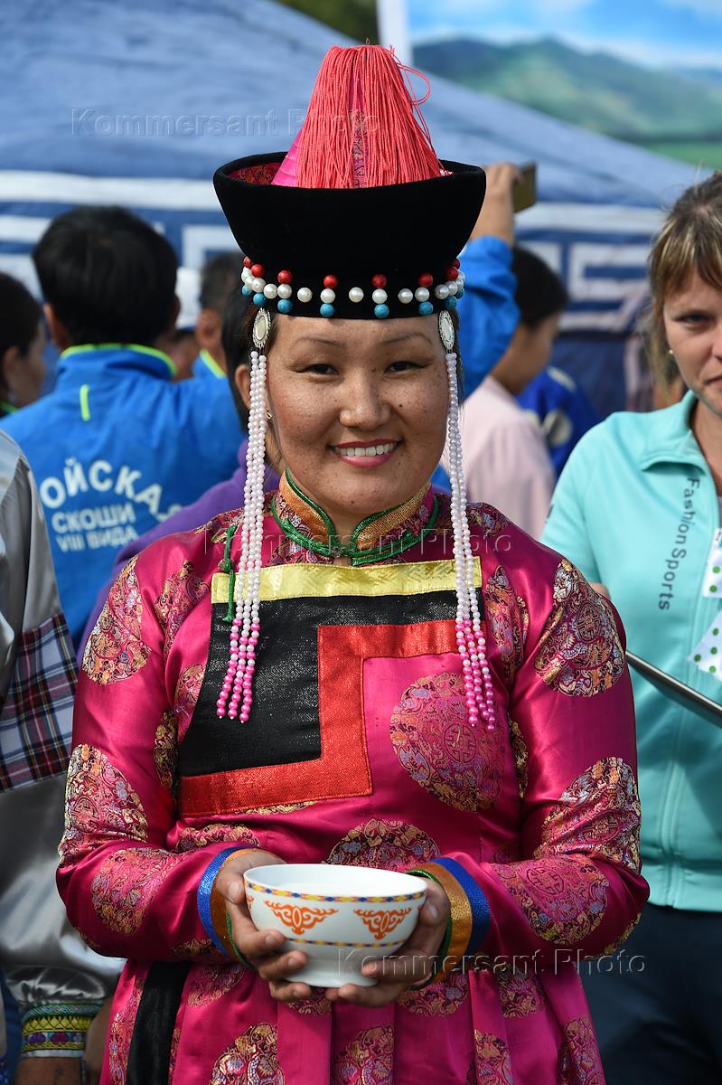 Предвыборная кампания в Бурятии. Женщина в национальном костюме во время праздника.