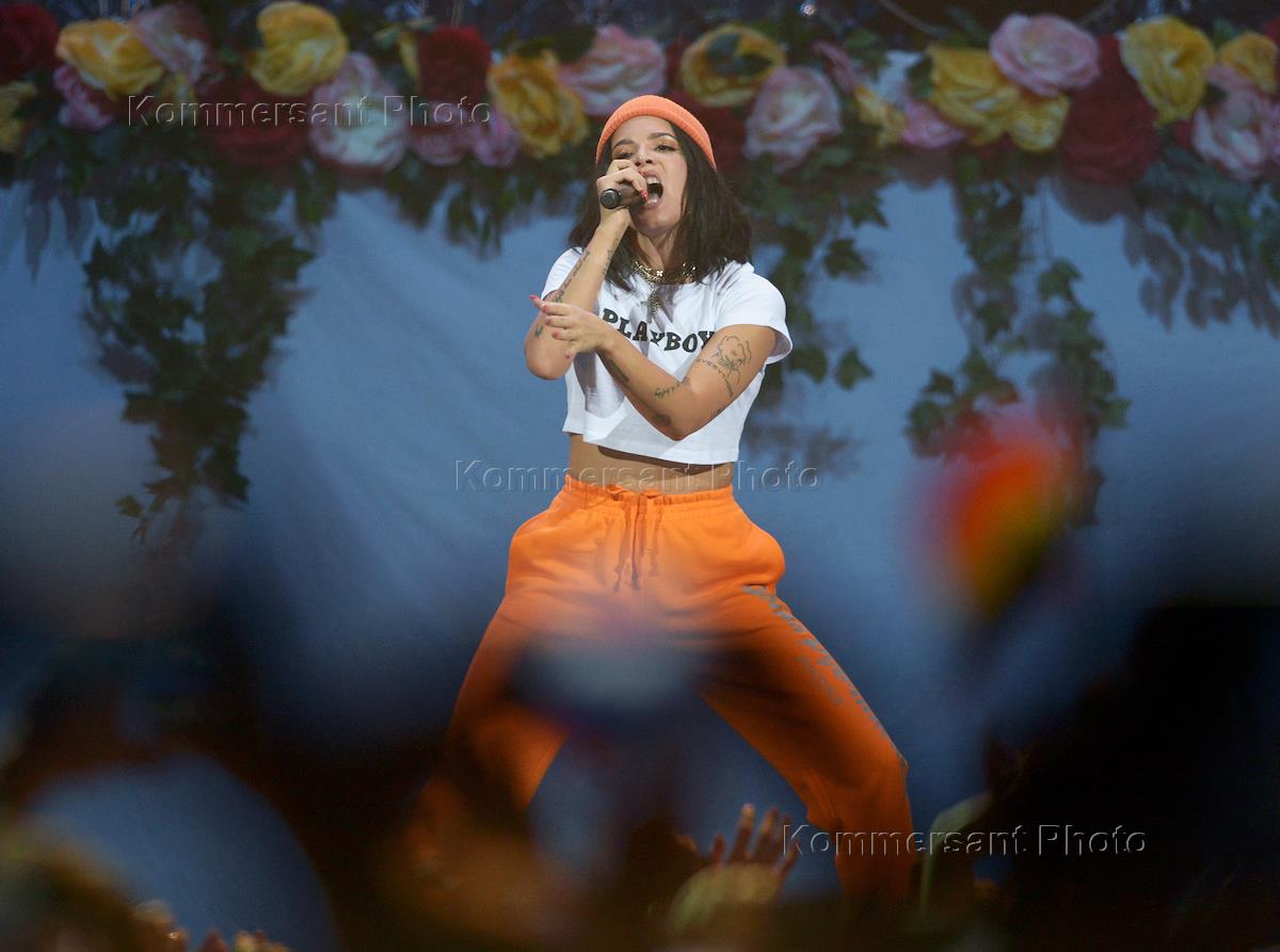 Американская певица Halsey (Холзи) во время выступления на своем сольном концерте в клубе Stadium Live.