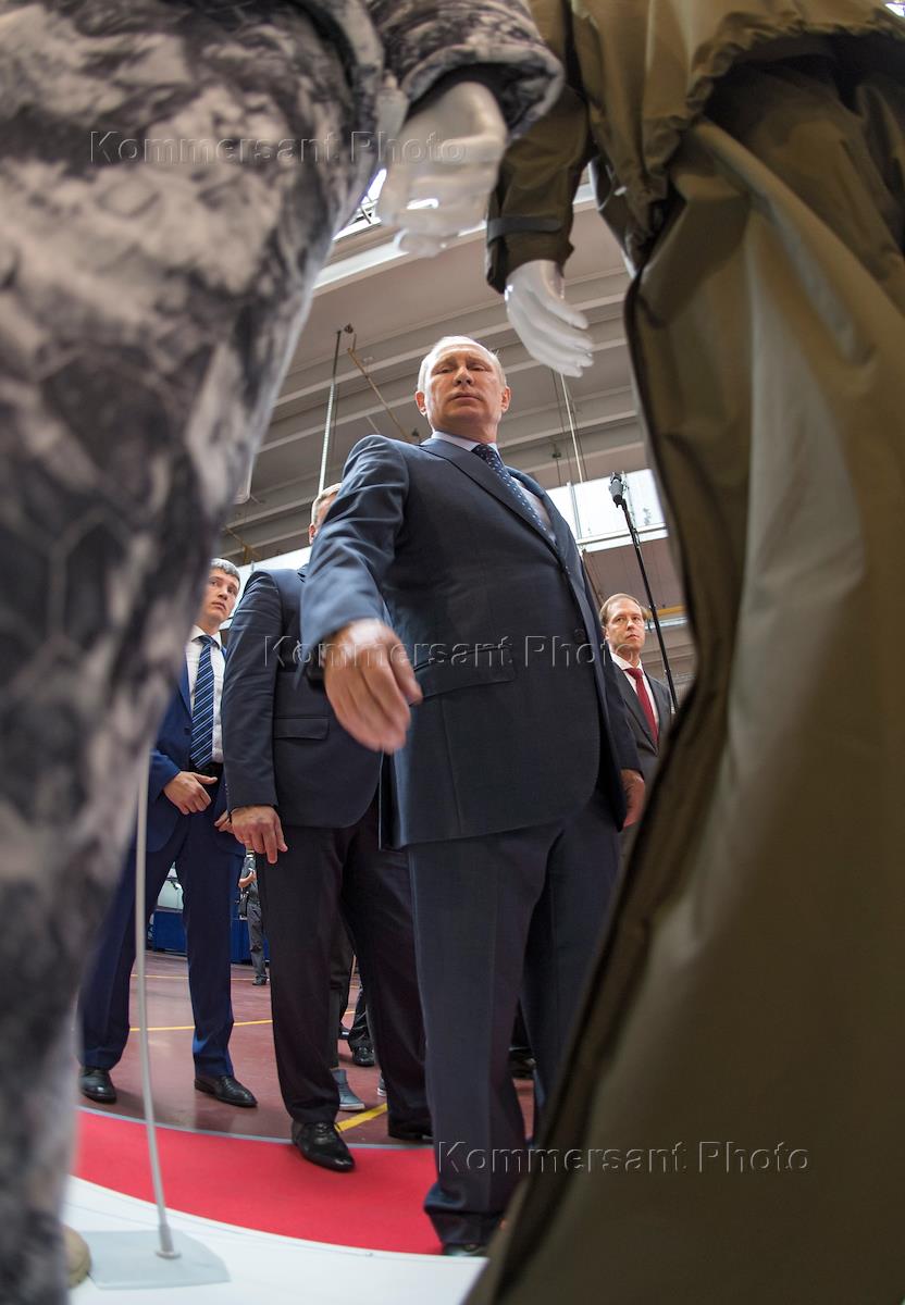 Рабочая поездка президента России Владимира Путина в Рязань. Президент России Владимир Путин во время осмотра выставки предприятий легкой промышленности России на Рязанском кожевенном заводе группы компаний "Русская кожа".