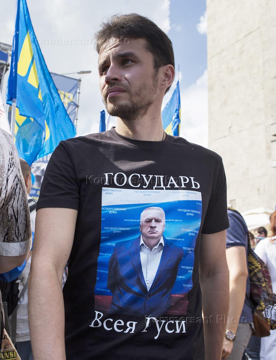 Митинг Либерально-демократической партии России (ЛДПР) на Тверской улице. Участник митинга.